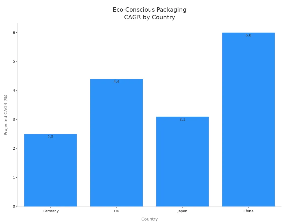 Big changes are coming. The EU wants all packaging to be recyclable by 2030. US stores ask for recycled content. Countries in the Middle East now require brands to take care of packaging waste. Some suppliers offer smart packaging and custom designs to help you stand out.