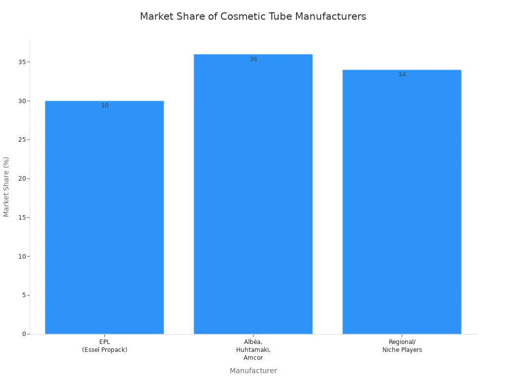 EPL, called Essel Propack too, leads in wholesale plastic round cosmetic tube ideas. You get affordable and custom choices from this top supplier. EPL has 30% market share, so they are important in the industry. Their Platina™ laminate tubes are 100% recyclable and win awards for design and being green.